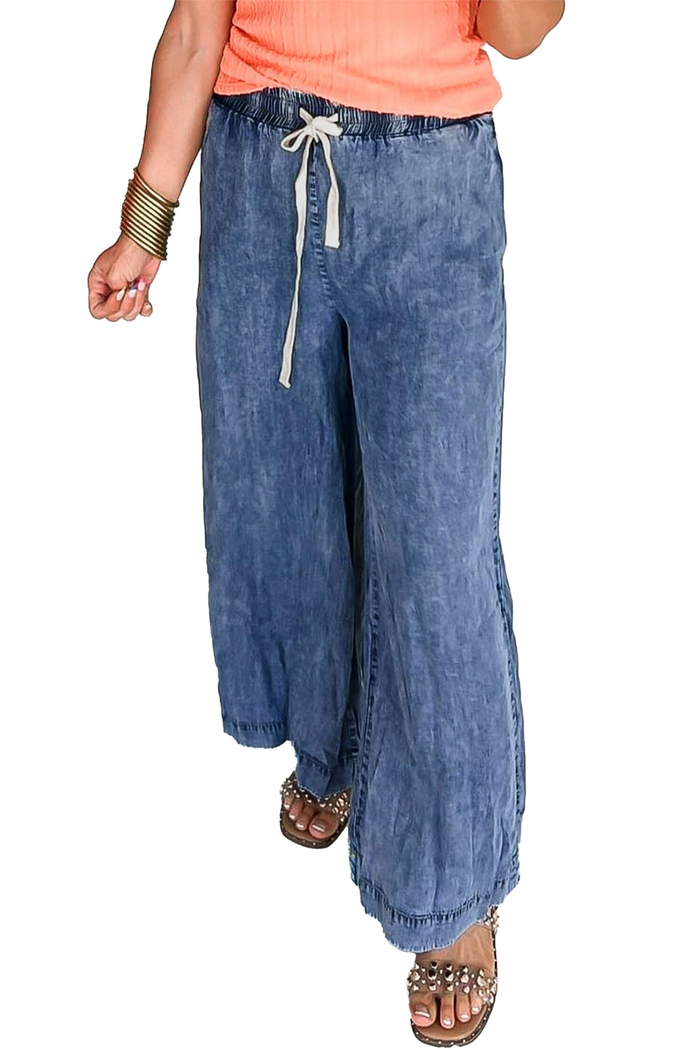 Dusk Blue Drawstring High Waist Plus Size Jeans
